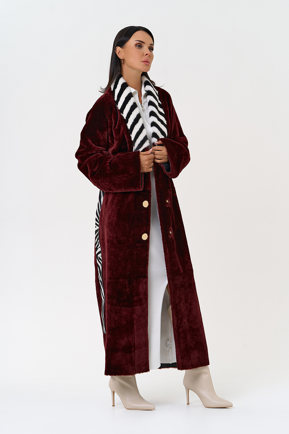 Вид застежки - кнопки, пояс из меха теленка Cavallino