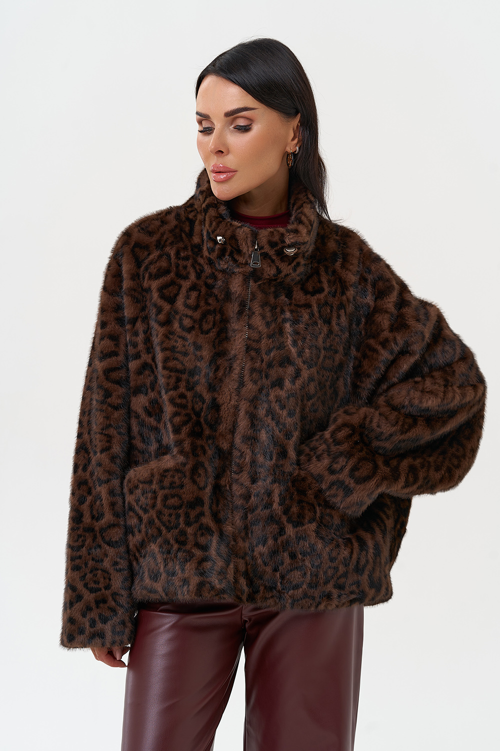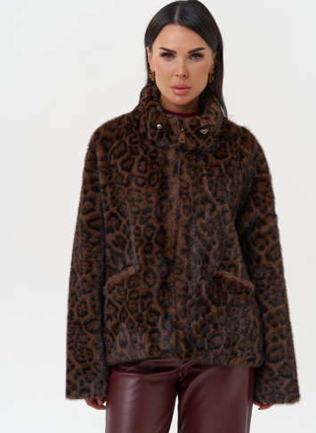 Фасон - прямой Длина изделия - 65 см Цвет - коричневый Принт - леопард Материал - экомех Состав полотна - полиэстер 100% Подкладка - полиэстер 100% Вид застежки - молния Вид ворота - стойка Фасон рукава - реглан, длинный |