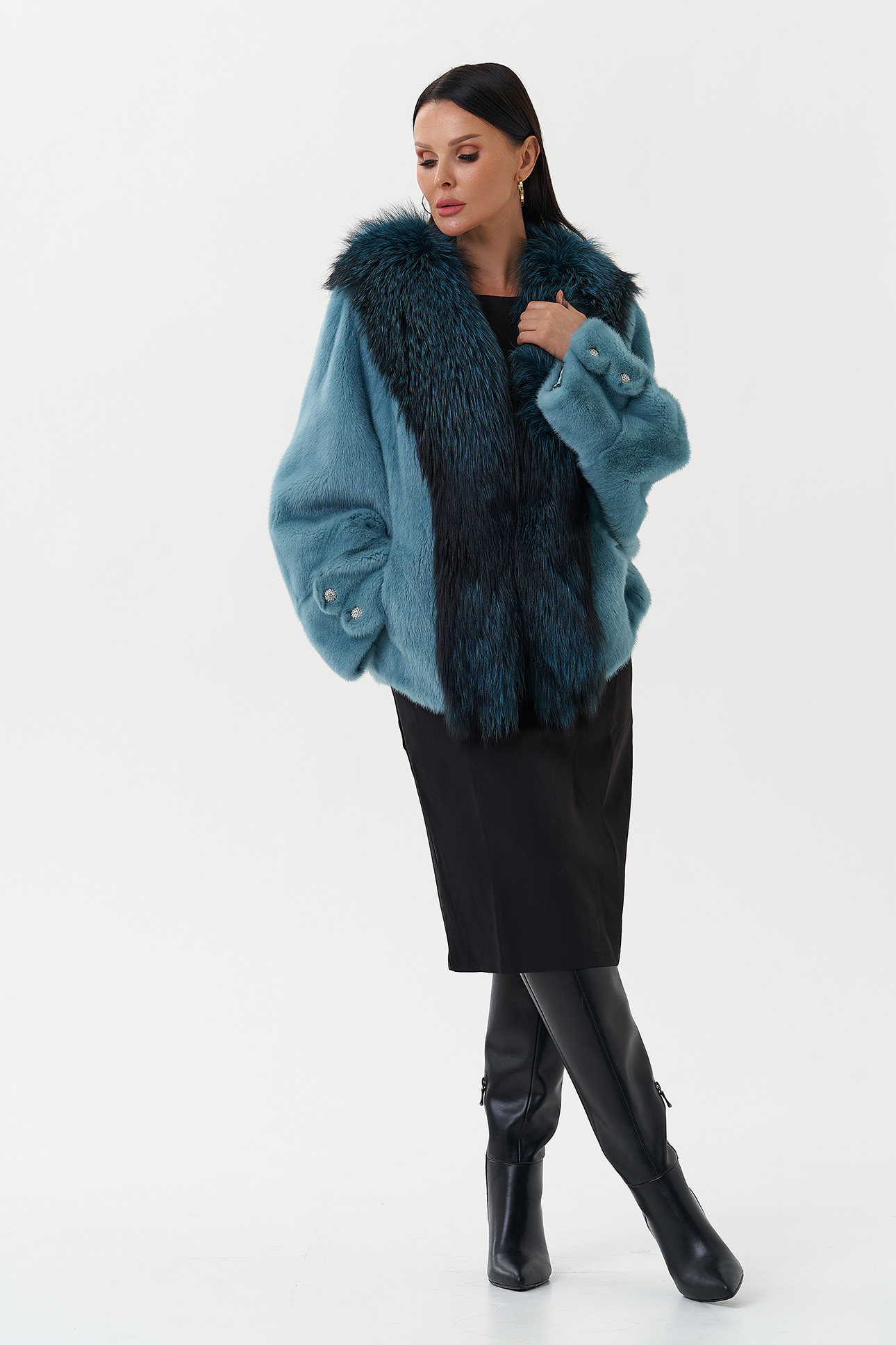 Тип ворота - V - образный воротник , отделка чернобурка